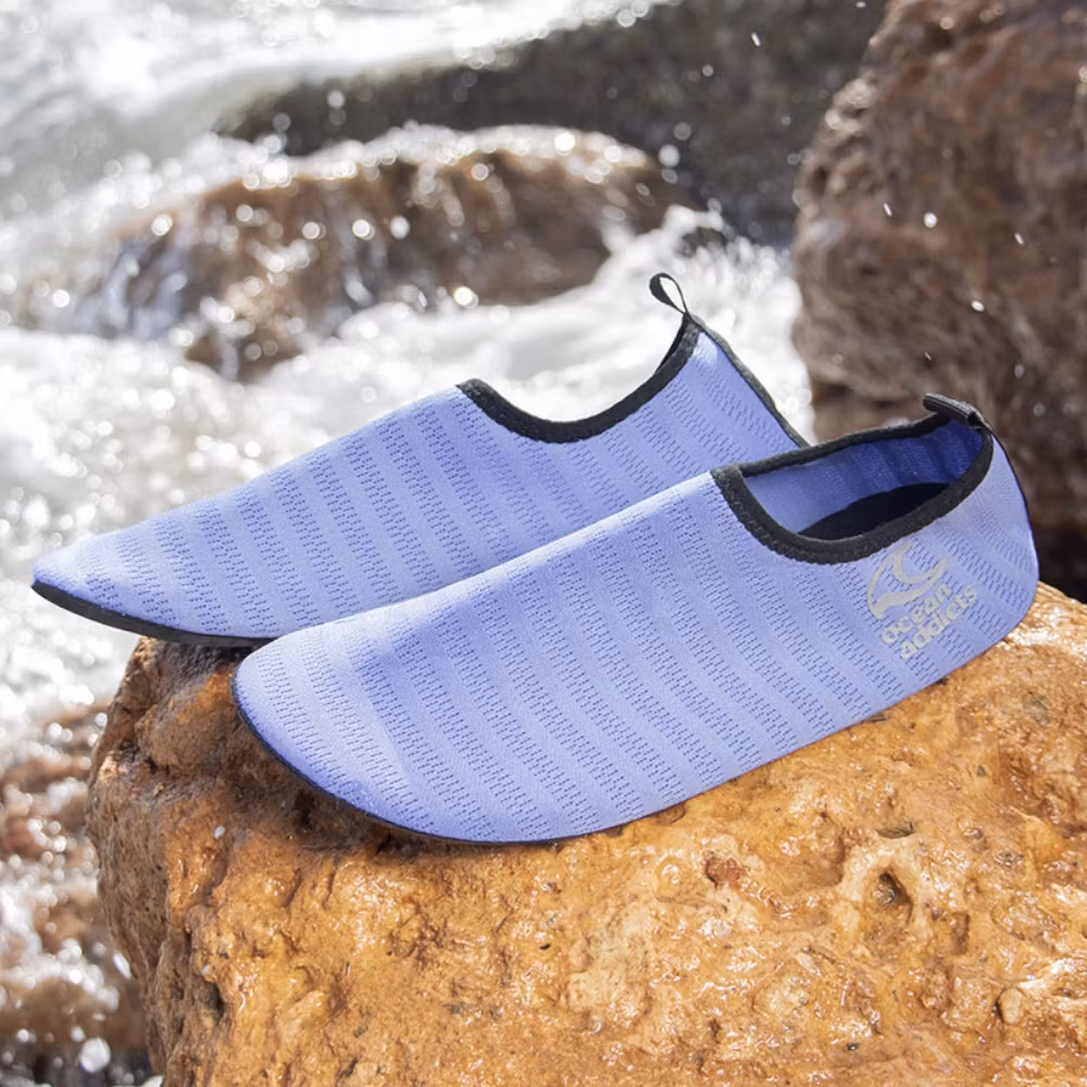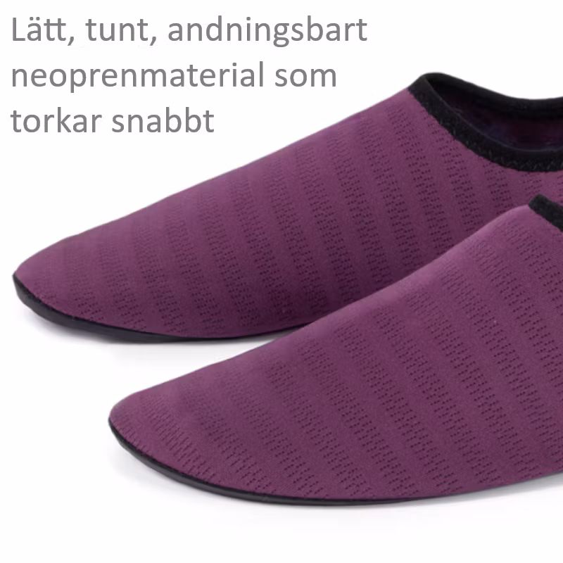 Härliga, lätta badskor i färgen lila, som skyddar din fötter mot skärsår & brännhet sand!
