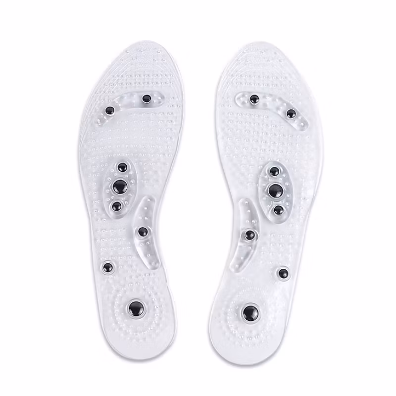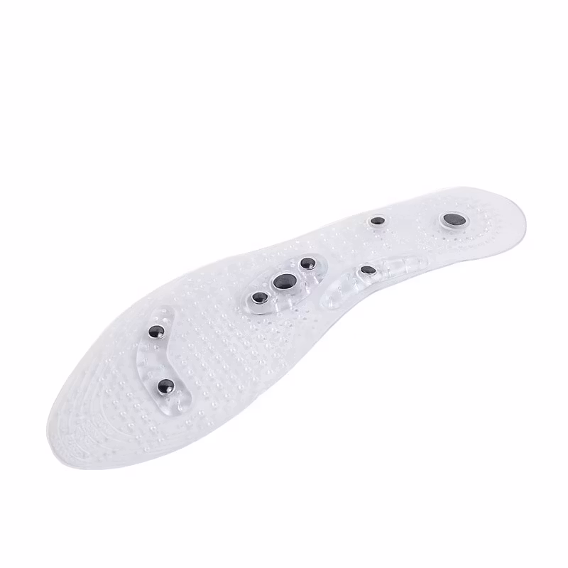 Innovativa skoinlägg med inbyggda magneter för att stimulera de olika akupunkturpunkterna, så kallat magnetterapi & akupressur. Magneter är placerade så att varje magnet ger rätt mängd behandling på rätt ställe och magnetfältet stimulerar fotsulans nerver samt ökar blodcirkulationen vilket främjar kroppens välbefinnande. Fotsulan kan linda hälsporre / mortons neurom samt öka blodcirkulationen. Sulorna går att klippa till önskar storlek.