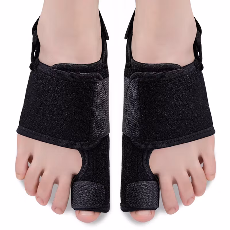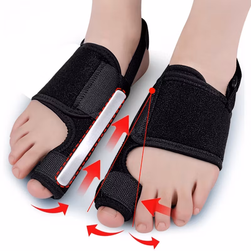 Denna korrigerande stödskena är utformad för att ge effektiv avlastning vid hallux valgus (snedställd stortå) och minska smärta i vardagen. Med ett justerbart band kan du enkelt anpassa passformen för optimal komfort och stabilitet – oavsett fotstorlek.