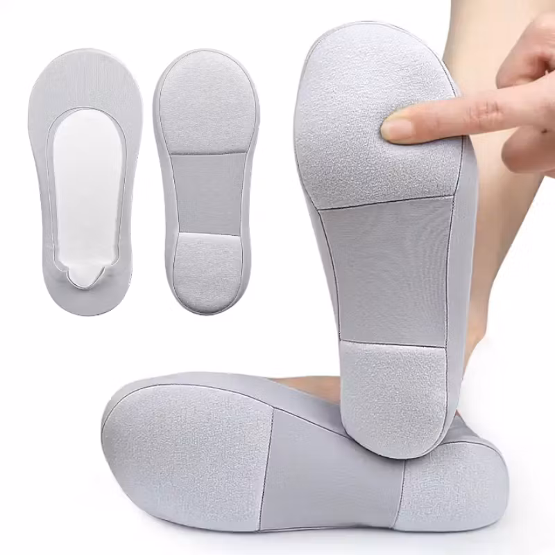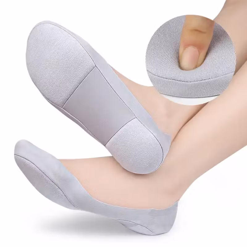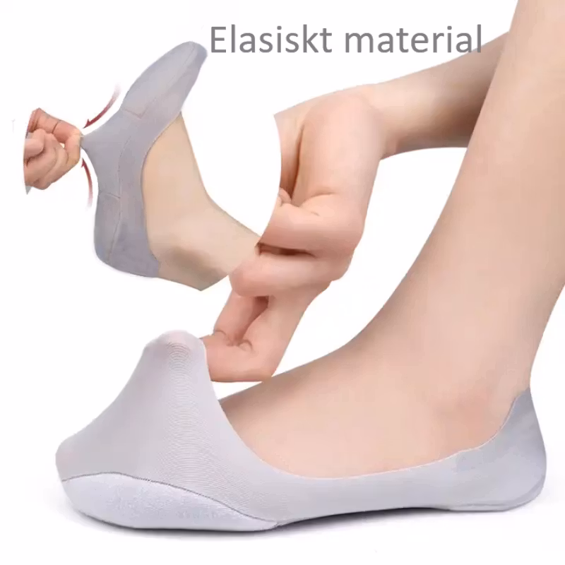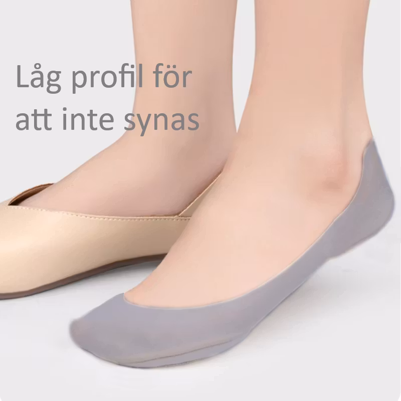 Perfekt kombination av bekväma strumpor med låg profil och vadderad sula, här presenterar vi våra låga strumpor med mjuka kuddar under hälen samt framfoten, för perfekt avlastning i dina sommarskor, ballerinas, loafers och sneakers. Den förstärkta silikonkanten baktill säkerställer att de inte glider av.