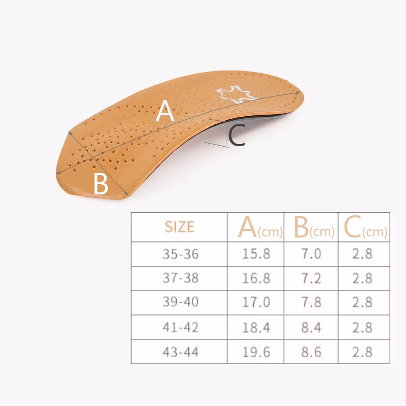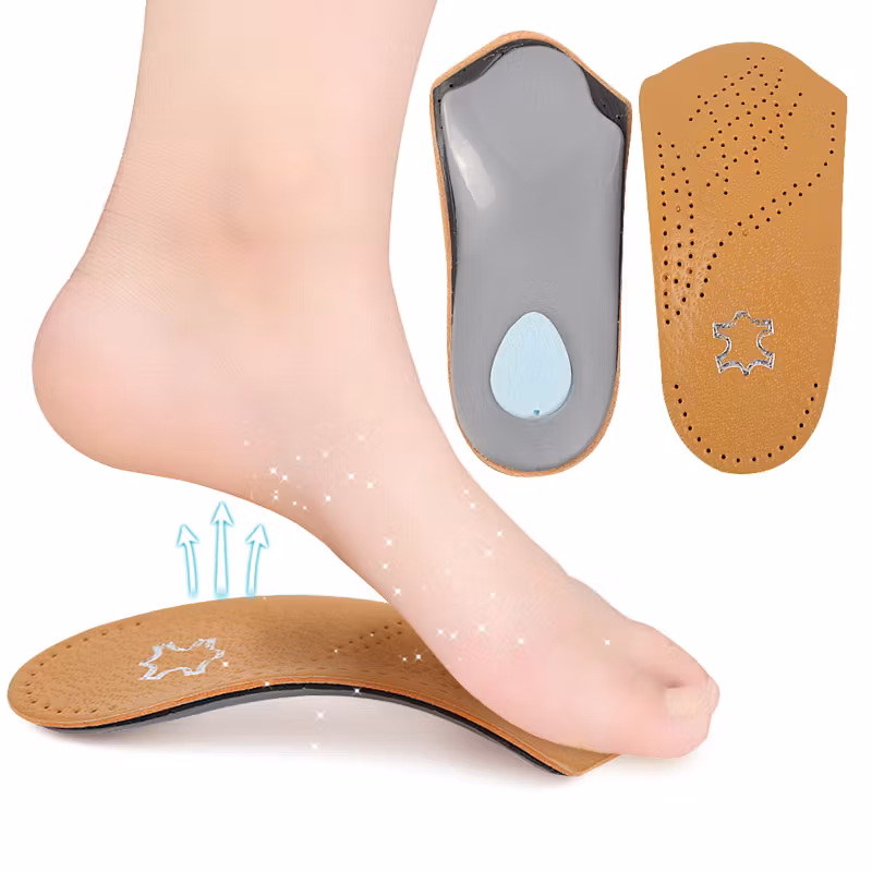 Skoinlägg, halvsula med fotvalvsstöd, stötdämpning för hälen, läder