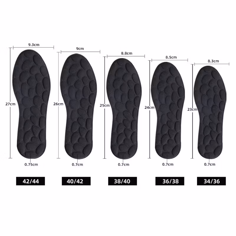 Ett par ultratunt skoinlägg med följsam passform och masserande, platta bubblor på ytan som känns mjuk och stimulerande för trötta fötter.