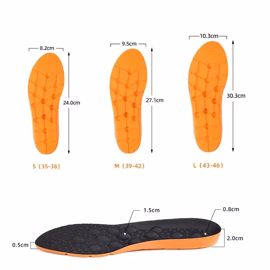 Upplev en ny nivå av komfort med våra masserande skoinlägg som ger både stöd och avslappning vid varje steg. De inbyggda massagepunkterna stimulerar fötterna, ökar blodcirkulationen och ger en skön, mjuk massage som lindrar trötta och ömma fötter.