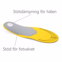 - Avlastar och ger extra stöd vid: hälsporre, mortons neurom och plattfot.