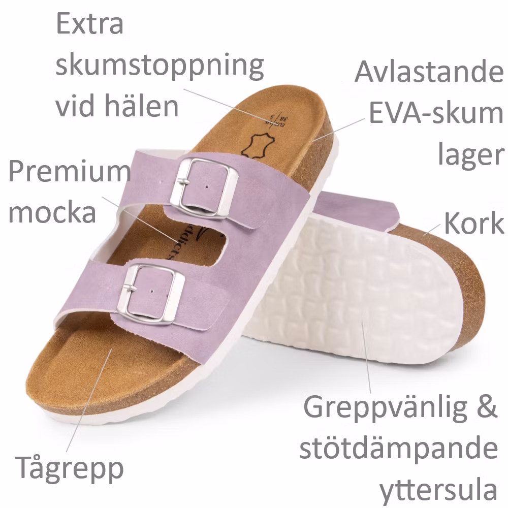 - Dämpande EVA-skum lager mellan mockan och korkslulan med extra stoppning vid hälen.