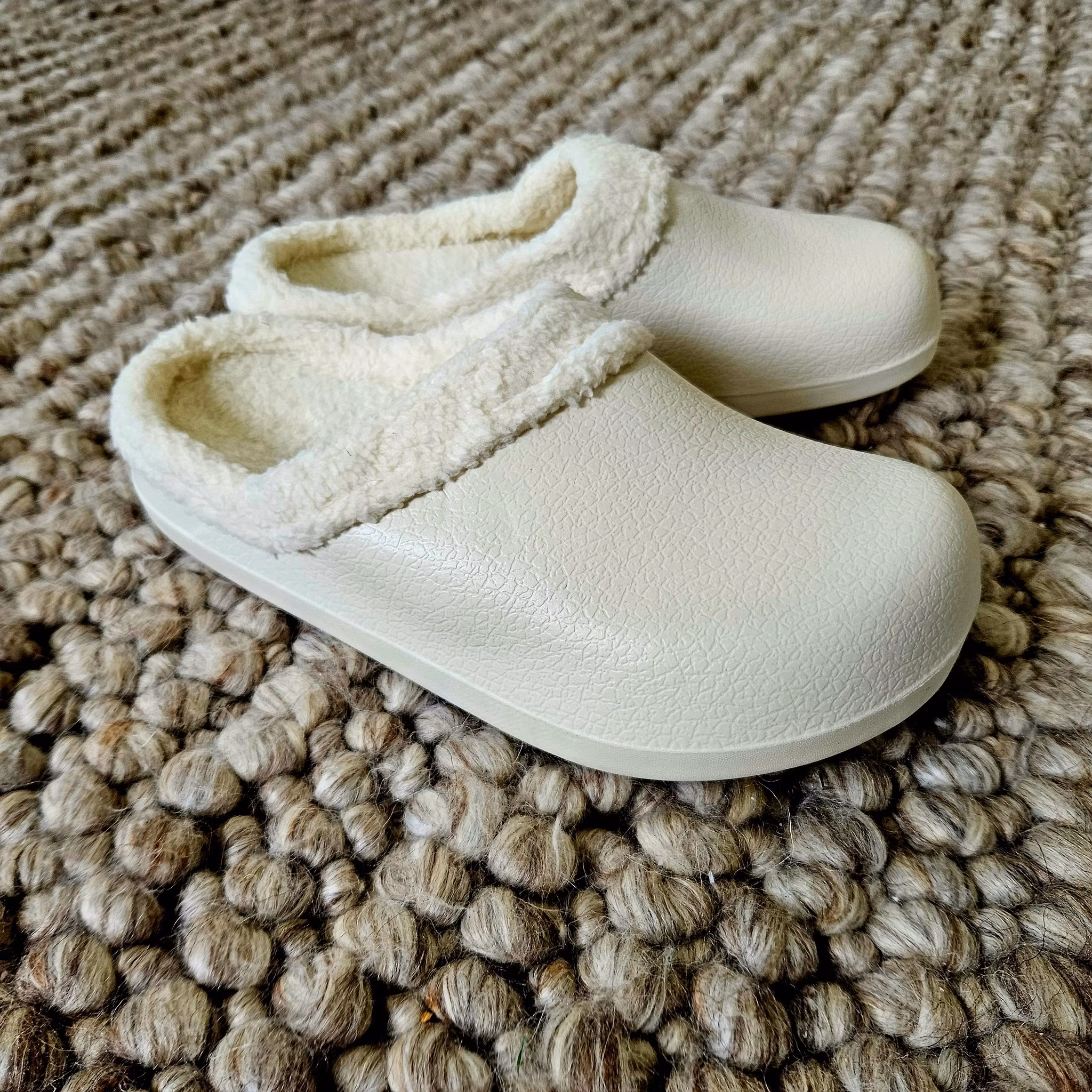 Frusen om fötterna? Missa då inte våra Premium fodrade CLOUD tofflor, i läcker design och snygg Naturvit färg med en ännu bättre ergonomisk utformning som avlastar dina fötter och ben, samtidigt som de håller dina fötter varma. Flera av våra kunder tycker dessutom att deras hälsporre (plantar fasciit) eller mortons neurom (framfotssmärta) har blivit bättre och ibland helt försvunnit!